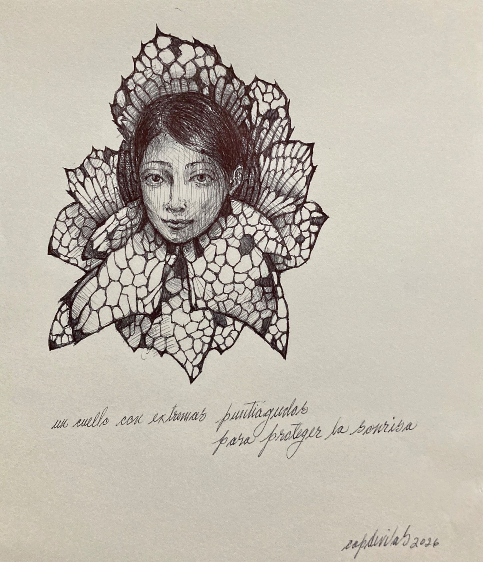 ... un cuello con extremos puntiagudos para proteger la sonrisa ...